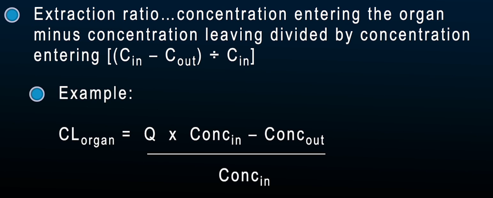 drugs cleared well if organ has high blood flow (Q) and good extraction ratio