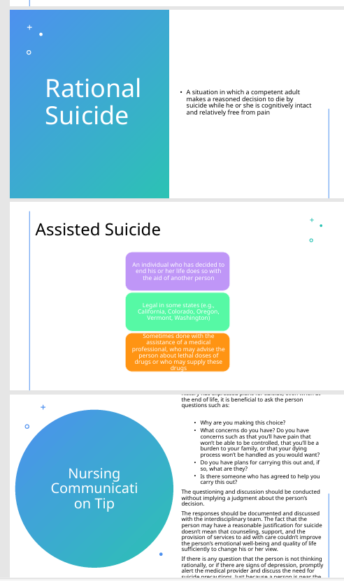 Rational suicide=decision by competent terminally ill person to end his or her life