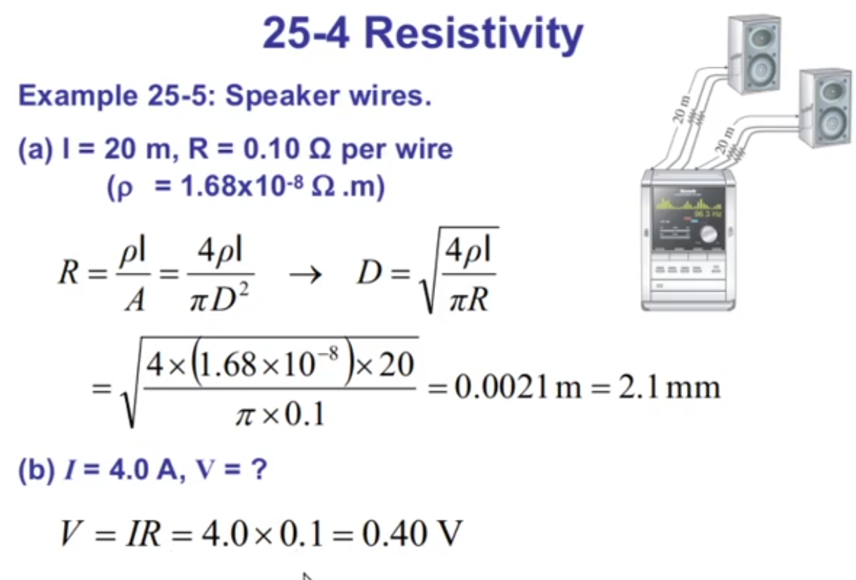 (b) V = IR = 4.0 A * 0.1 \Omega = 0.40 V