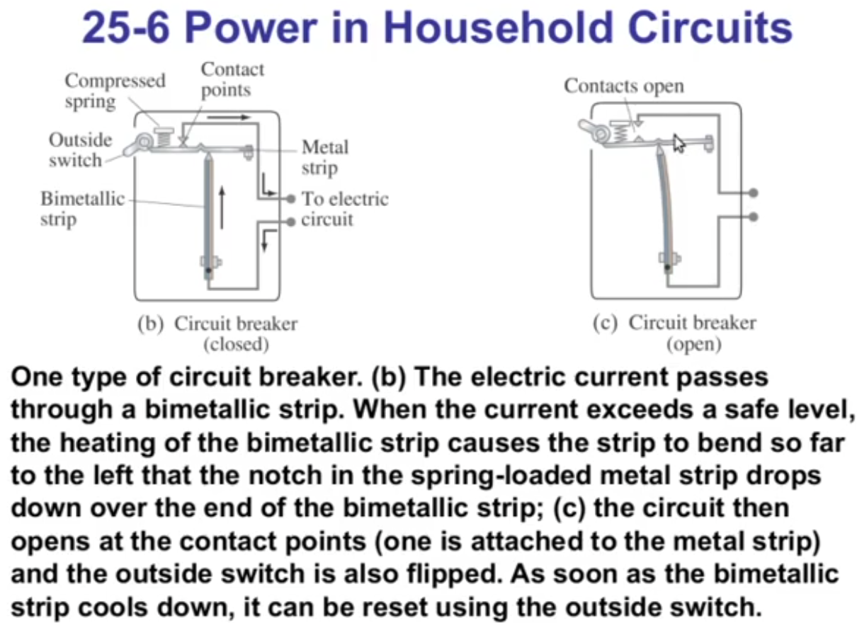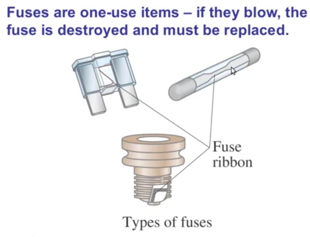 Circuit breakers are switches that open if the current is too high; they can be reset.