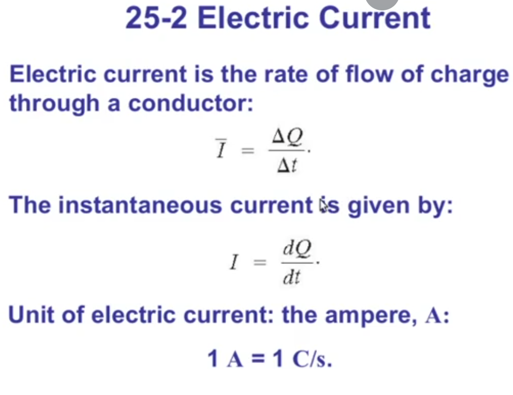 The instantaneous current is given by: I = \frac{dQ}{dt}.