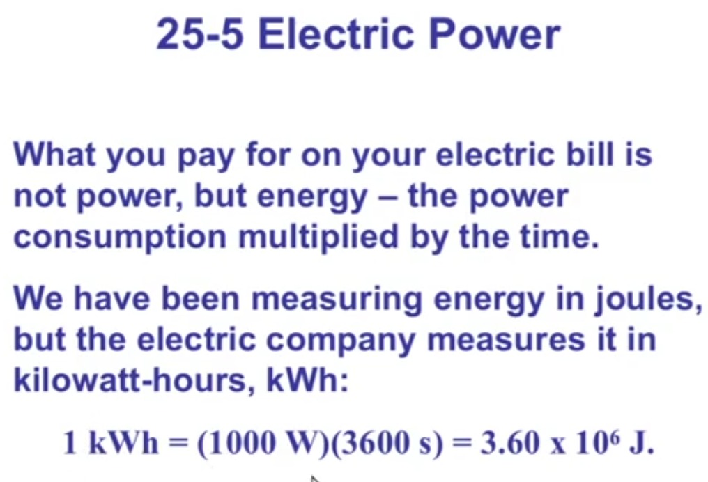 1 kWh = (1000 W)(3600 s) = 3.60 * 10^6 J