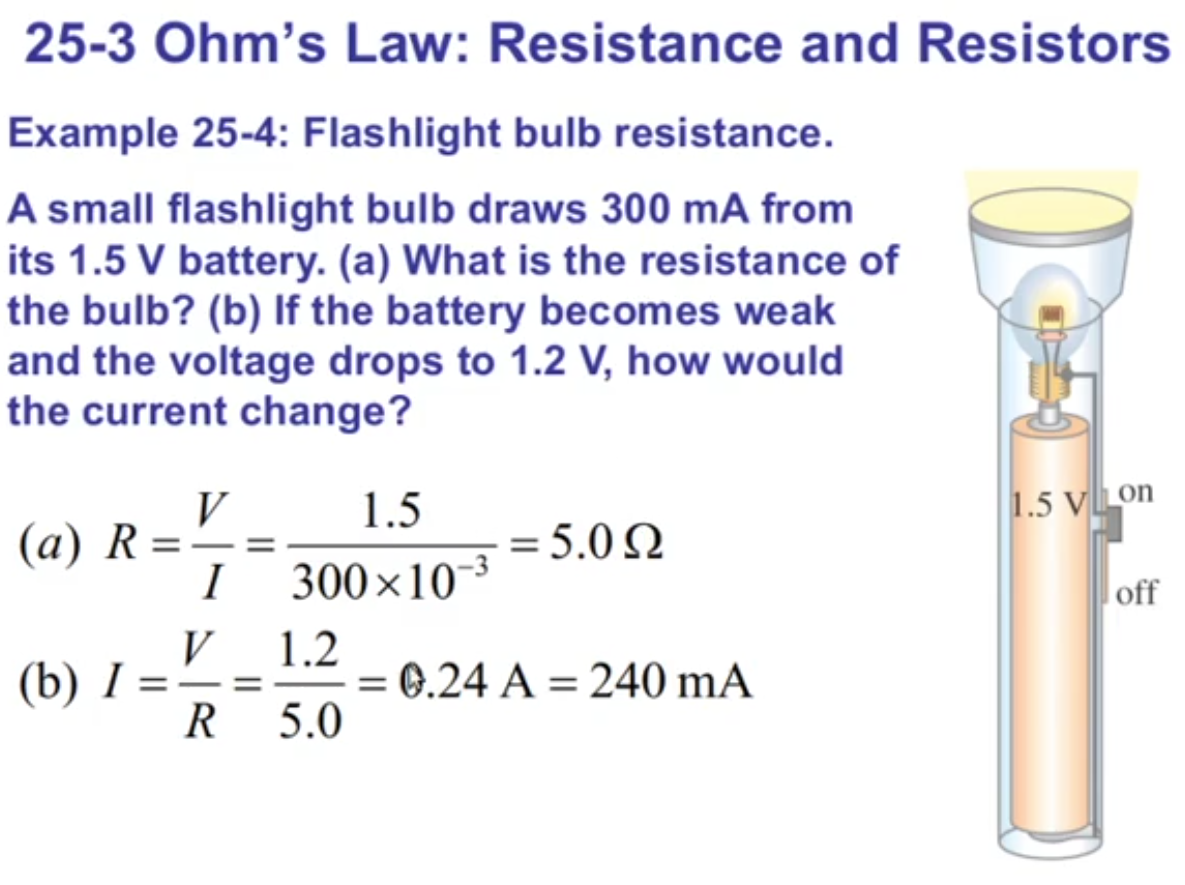 (b) I = \frac{V}{R} = \frac{1.2 V}{5.0 \Omega} = 0.24 A = 240 mA