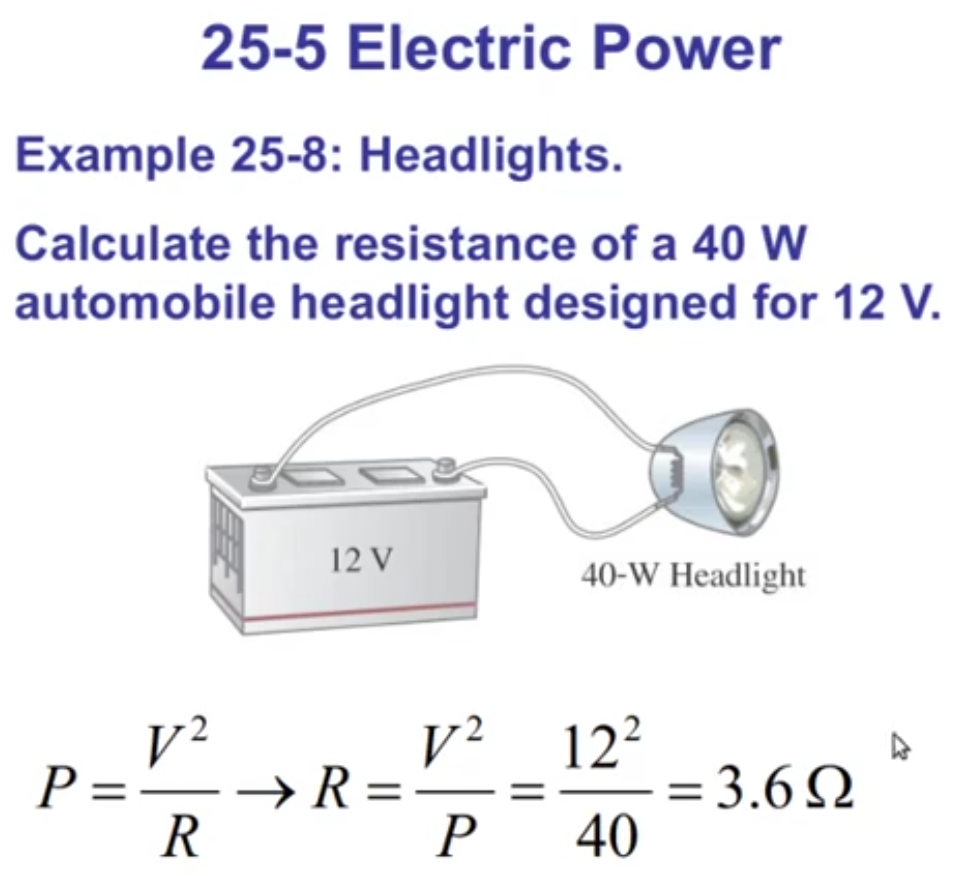Calculate the resistance of a 40 W automobile headlight designed for 12 V.