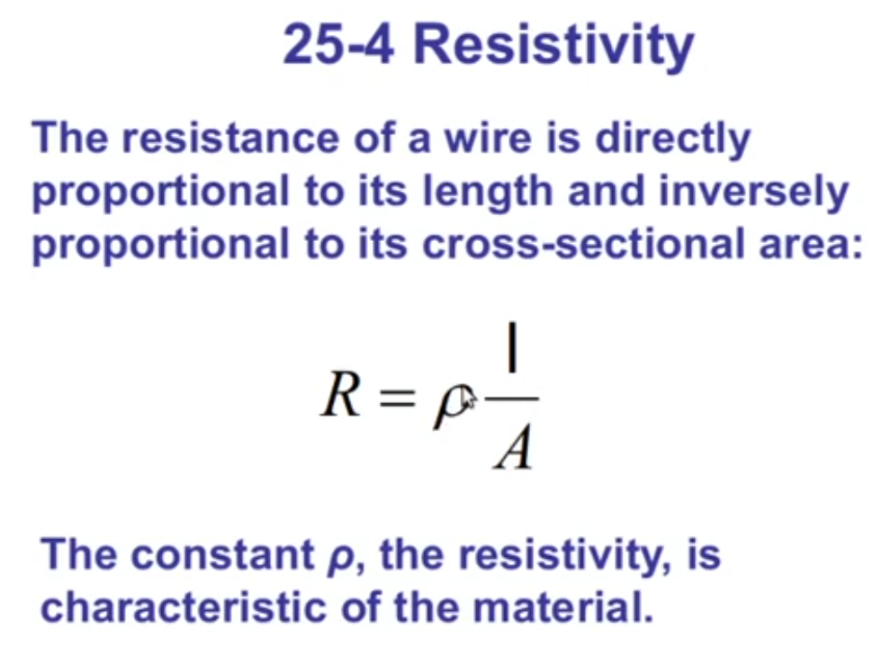 Resistance is determined by shape and material: R = \rho \frac{l}{A}.