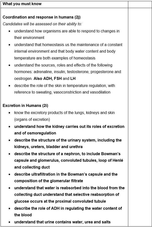 Homeostasis – The process by which the body keeps its internal environment stable, even when external conditions change. It controls factors such as temperature, water levels, and blood glucose to keep the body working properly.