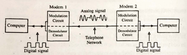 Modulator: This unit is used to convert the digital data from the computer into analog data. This process is called modulation.