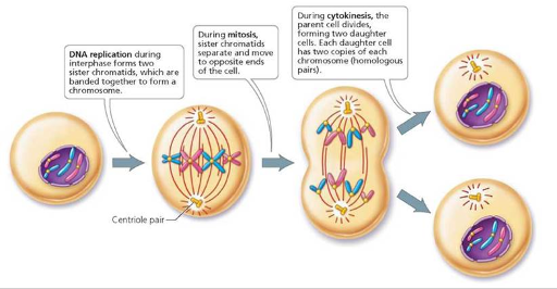 Mitosis has 4 stages, prophase, metaphase, anaphase and telophase.