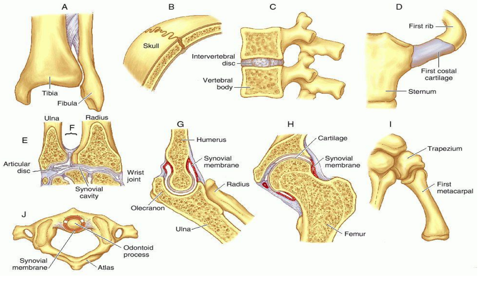 (carpometacarpal of thumb); J, pivot (atlantoaxial).
