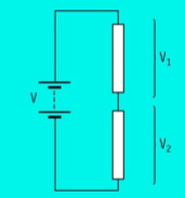 The resistors divide the potential difference of the supply in the ratio of their resistances.