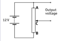As the movable contact is moved from A to B the output voltage increases from zero volts (at A) to 12 volts (at B)