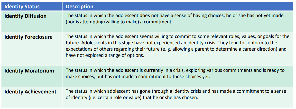 Adolescents may transition between statuses in various life domains (vocational, religious, etc.).