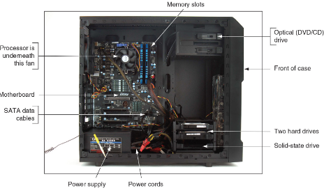 Cooler: Sits on top of the processor and consists of a fan and a heat sink