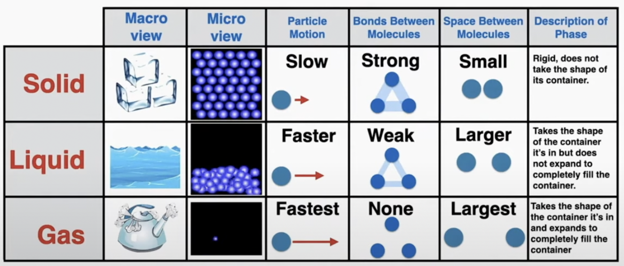 The Kinetic Theory of Matter: Matter is made up of a large number of tiny particles. The microscopic (small) behavior of the particles determines the macroscopic (large) behavior of the material.