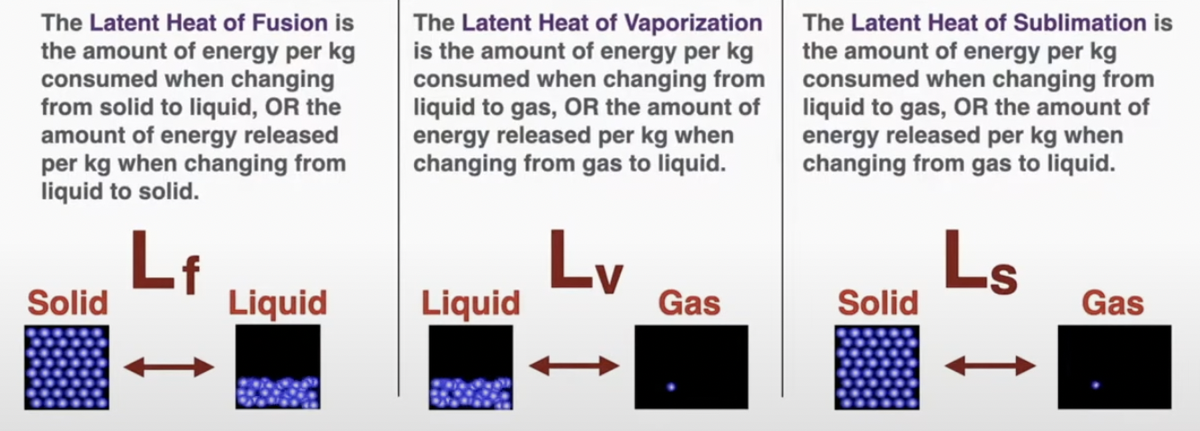 Latent Heat is a measurement of how much energy it will take to change 1 kilogram of material from one phase to another when the material is at the correct temperature to change its phase.