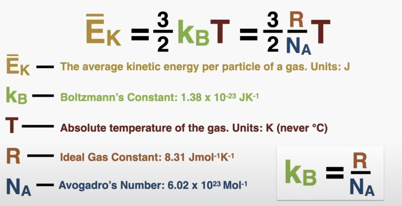 finding the velocity of the particles use m = molar mass/avogadro’s constant → into kg *10^-3 and then put into Ek = ½ mv² where Ek = 3/2KbT