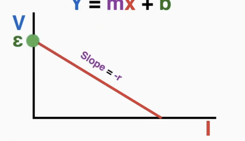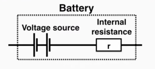 Internal resistance (r) refers to the resistance inside of a battery. No battery is
