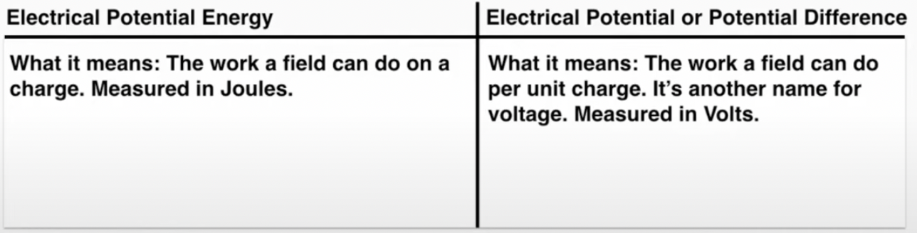 Voltage (V) is a measurement of the electrical potential energy per unit charge between two points in an electric field. It is a scalar. Voltage tells you how much energy will be added to a charge as it moves a given distance in an electric field based on the amount of charge. (V)