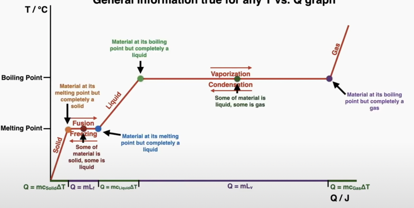 Temperature heat graph: slope = 1/mc (mass stays constant)