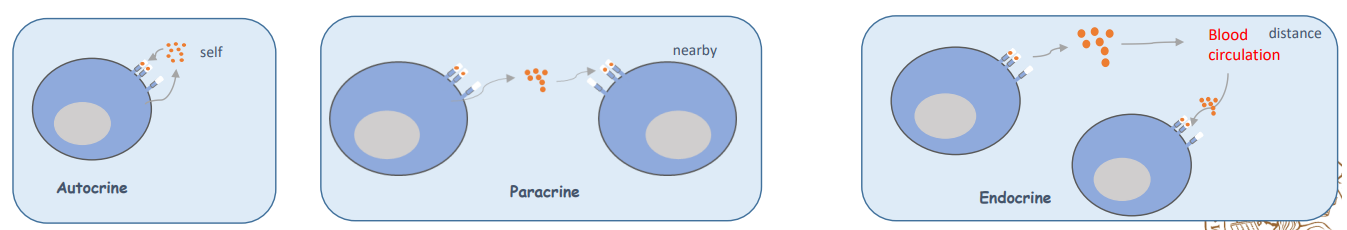 2) Paracrine manner: acting on cells nearby those that produce it (they can act on other cells nearby)