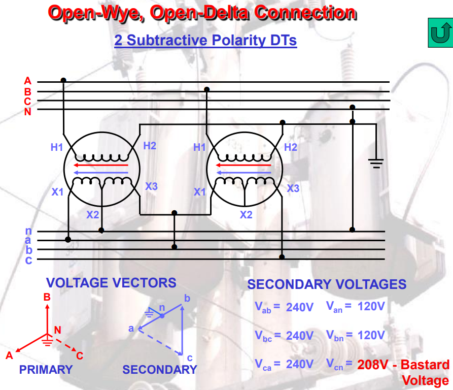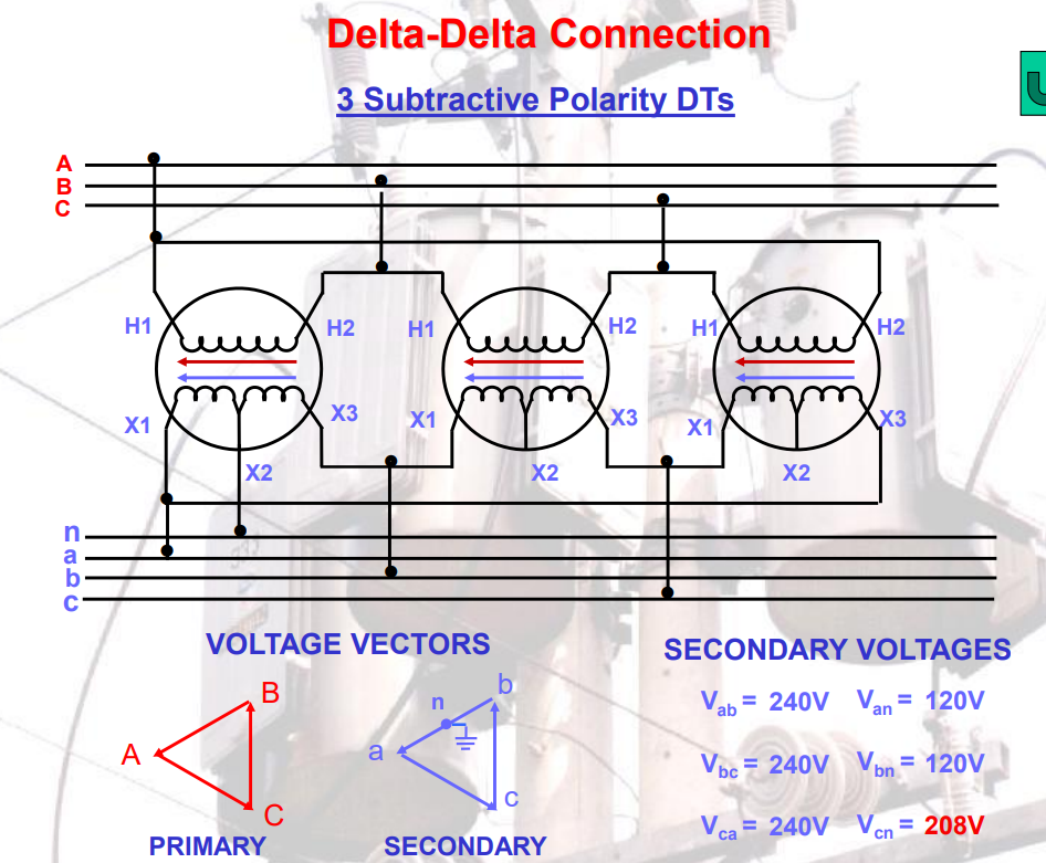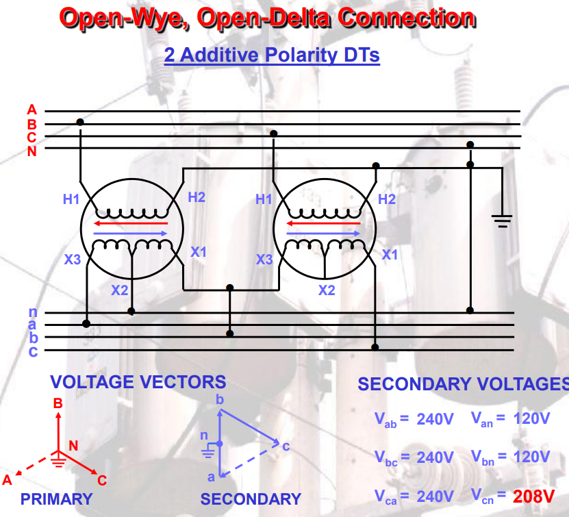 Two-bushing DTs for line-to-ground connection on system with line-to-line voltages of 4.16kV.