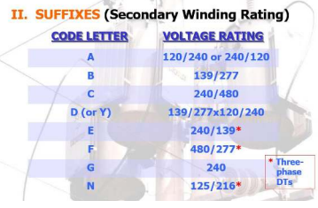 SYMBOLS USED IN TRANSFORMER VOLTAGE RATINGS