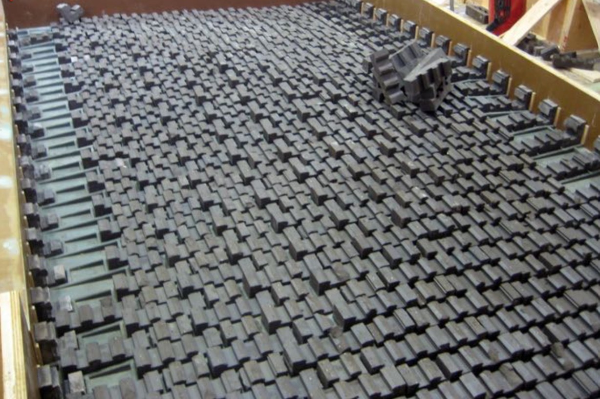Molds arranged so that the corners look like full bricks