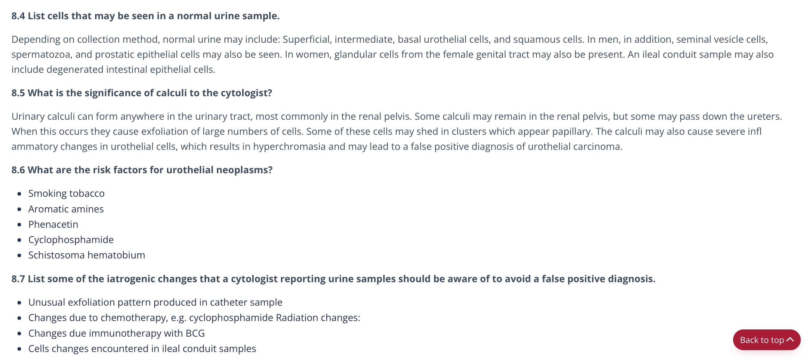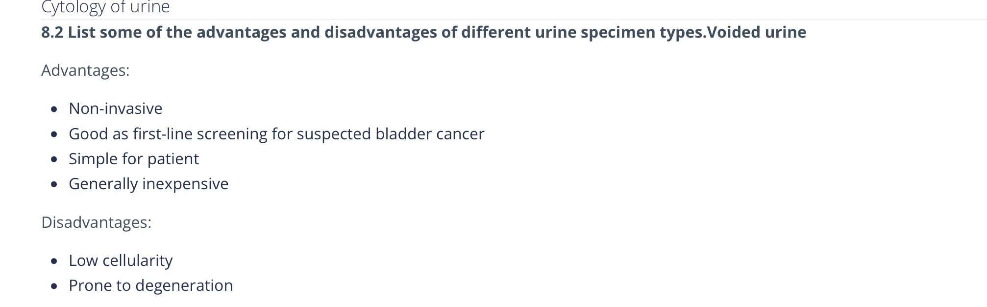 3. A urine specimen was collected from a 72 year old male with haematuria. a) describe the typical cytological features of urothelial carcinoma in voided urine specimens b) what are the most common causes of false positive and false negative results in urine cytology?