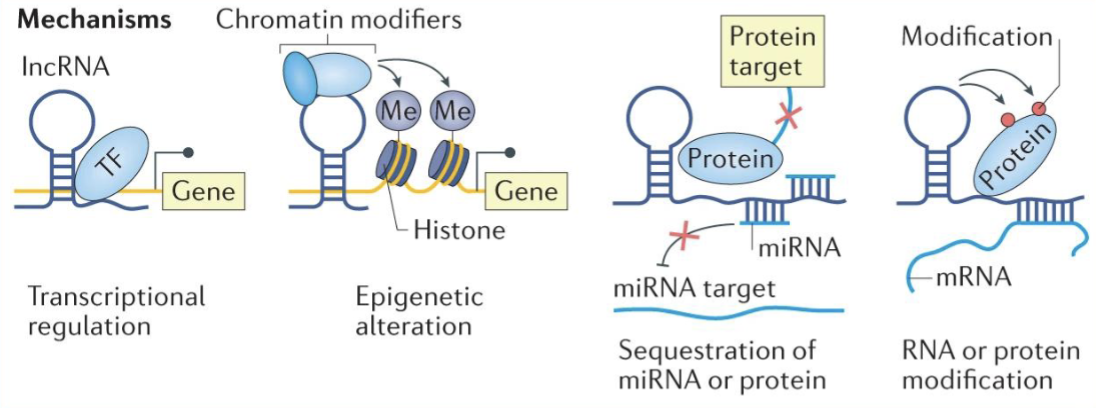 They can act as molecular scaffolds to guide chromatin modifying enzymes (eg. HOTAIR or DLX6AS24)