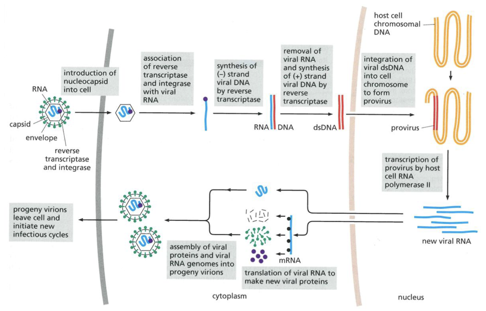 Cancer causing oncogenes like v-src introduced into genome of infected cells, reversing central dogma of biology