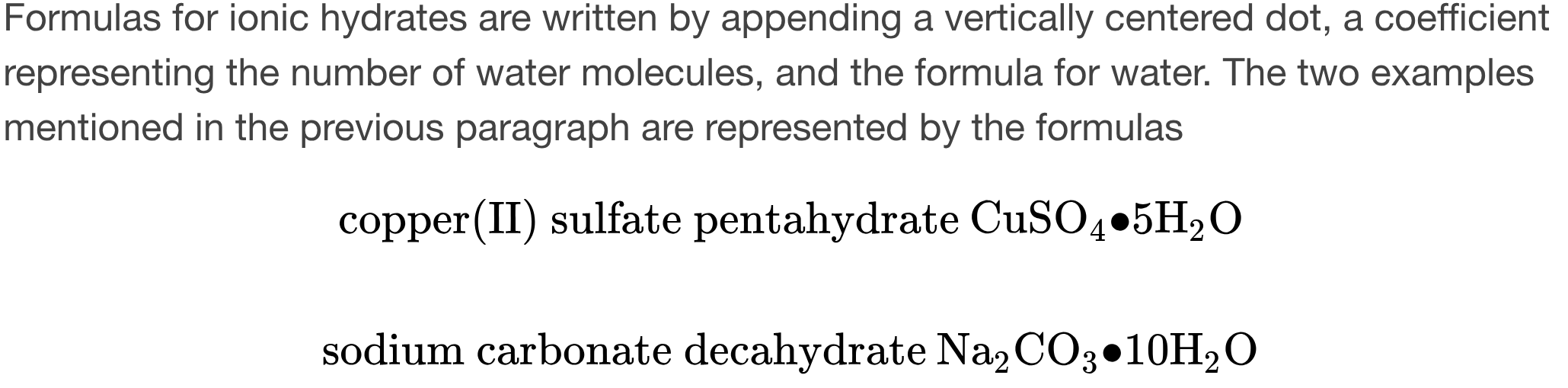 # of water molecules + suffix hydrate