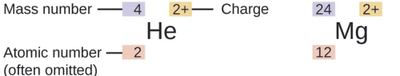 atomic number shows → mass # (A)