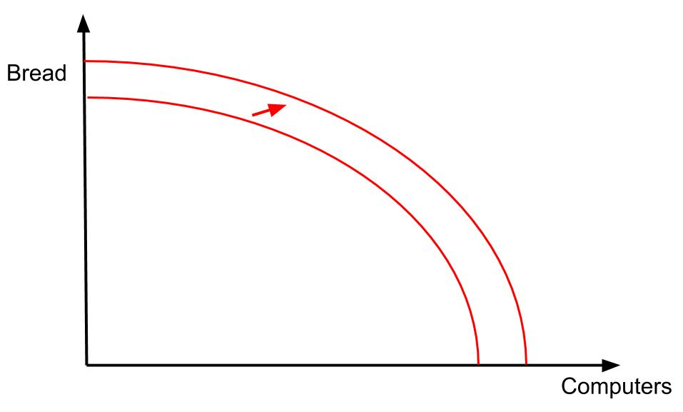 Figure 1 illustrates production possibilities using computers (x-axis) and bread (y-axis).