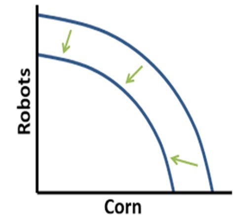 If firm is producing at a point inside the boundary, assume some resources are not being used to their full potential for production.