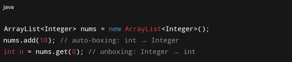 Unlike regular arrays, ArrayLists only store objects, not primitive types.