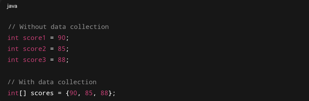 Instead of creating separate variables for each data item, you can group them using a data collection.