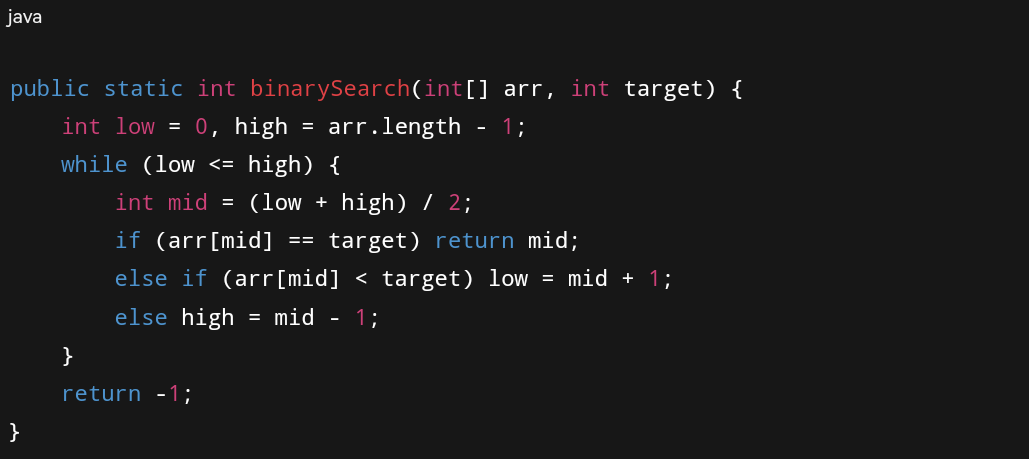 Works only on sorted arrays. Repeatedly divides the search range in half.