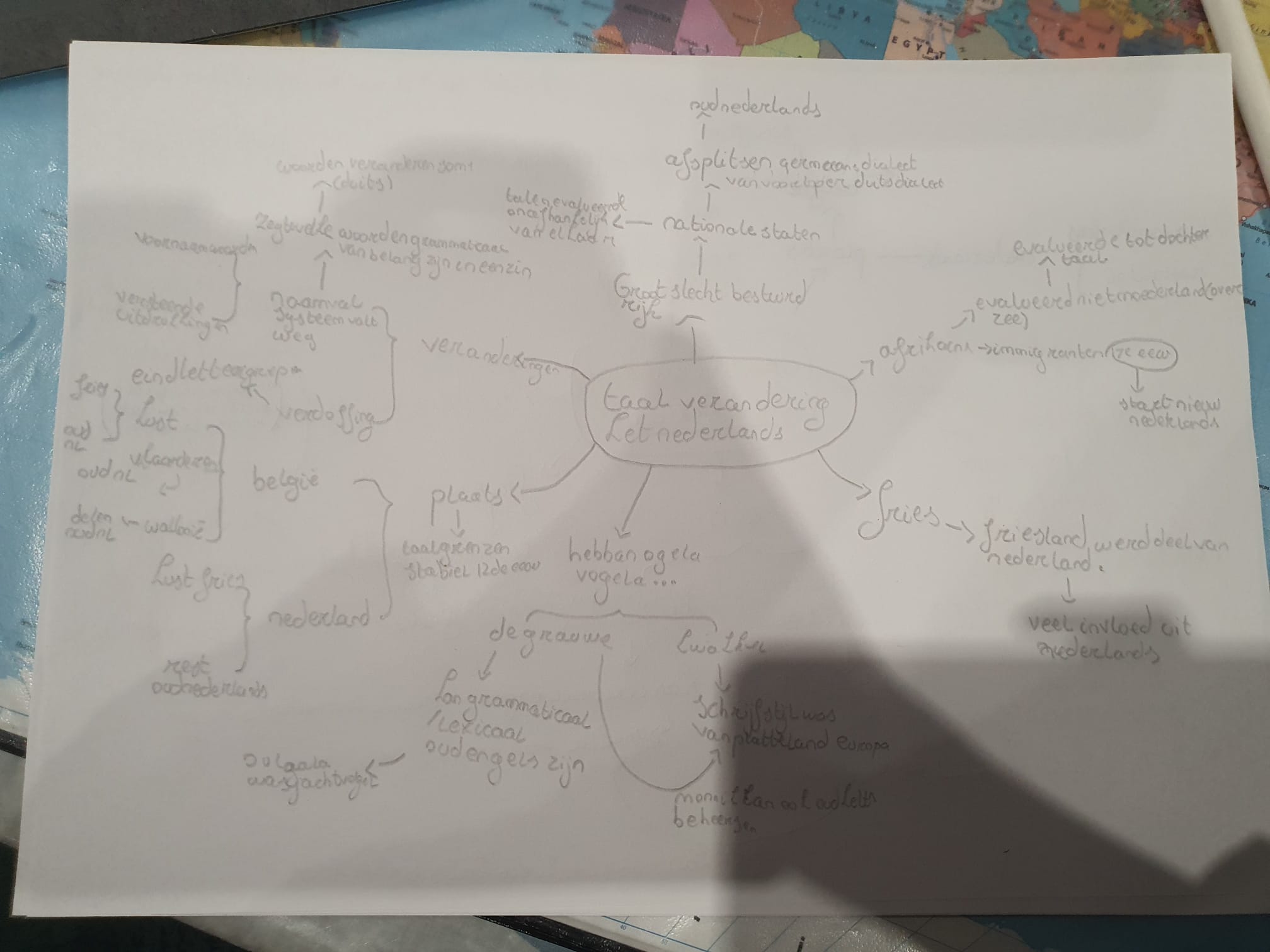 Nederlands heeft door de tijd heen veel veranderingen doorgemaakt. Engels, Germaans en Nederlands zijn nauw verwante talen; dit is wat je vorige les moest weten. Deze verwantschap komt doordat deze talen oorspronkelijk deel uitmaakten van hetzelfde rijk, dat slecht werd bestuurd. Later ontstonden nationale staten (Nederland, Duitsland en het Verenigd Koninkrijk), waardoor de talen zich afzonderlijk ontwikkelden en in elk gebied standaardtalen ontstonden. Friesland werd onderdeel van Nederland, waardoor het Fries sterk door het Nederlands werd beïnvloed (zoals het gebruik van ik in plaats van het Engelse I).