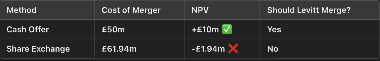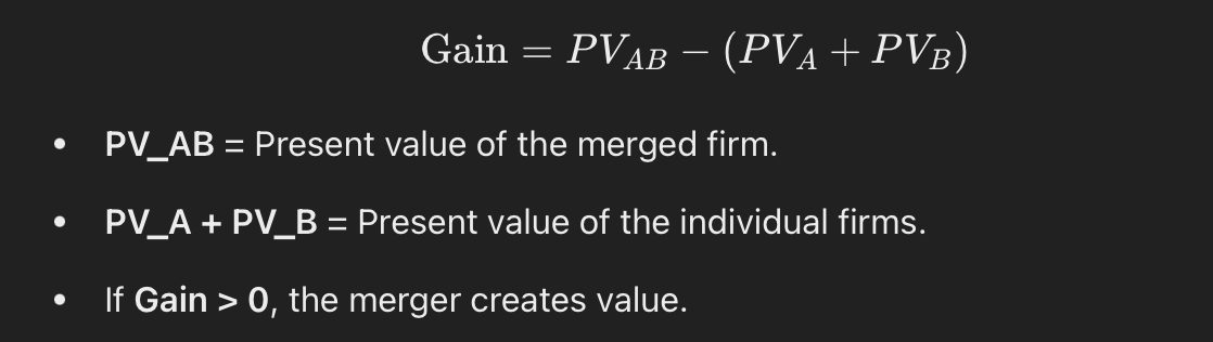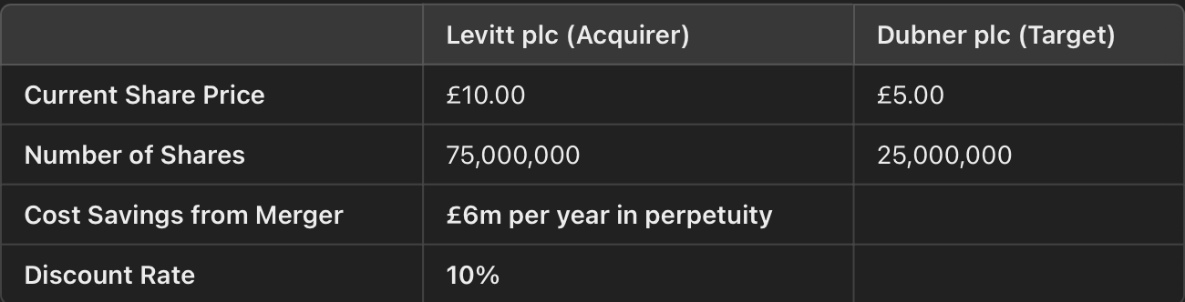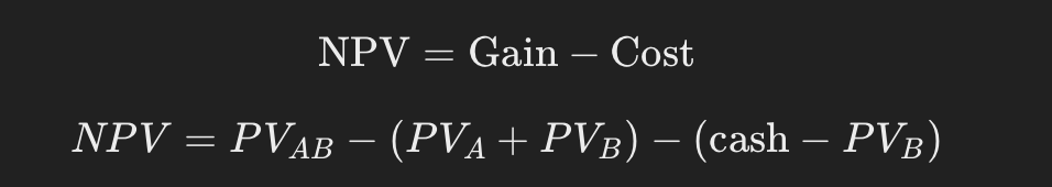 calculate the gains, costs, and NPV of a merger - analysing whether a merger creates financial value