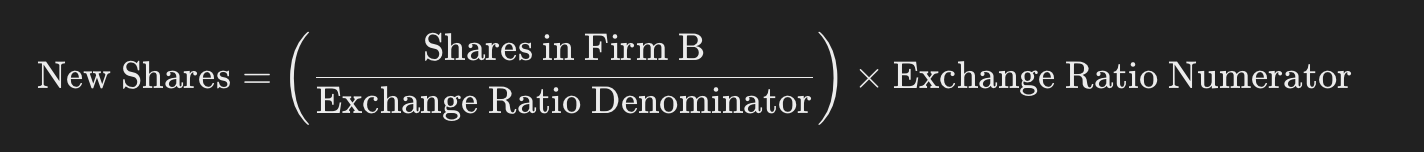shares [stock for stock] - acquirer issues shares instead of cash, diluting ownership