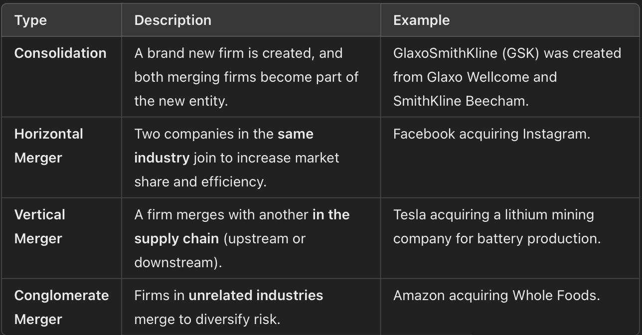 types of mergers