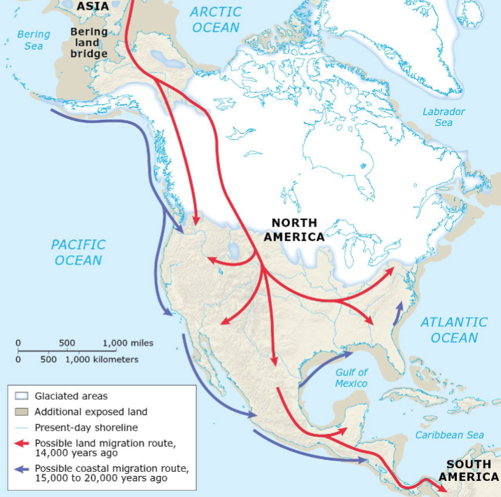 Early tribes across North and South America, reaching the tip of South America ~ 11,000 years ago