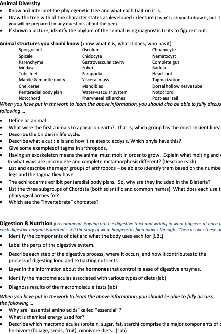 Animal structures you should know (know what it is, what it does, who has it)