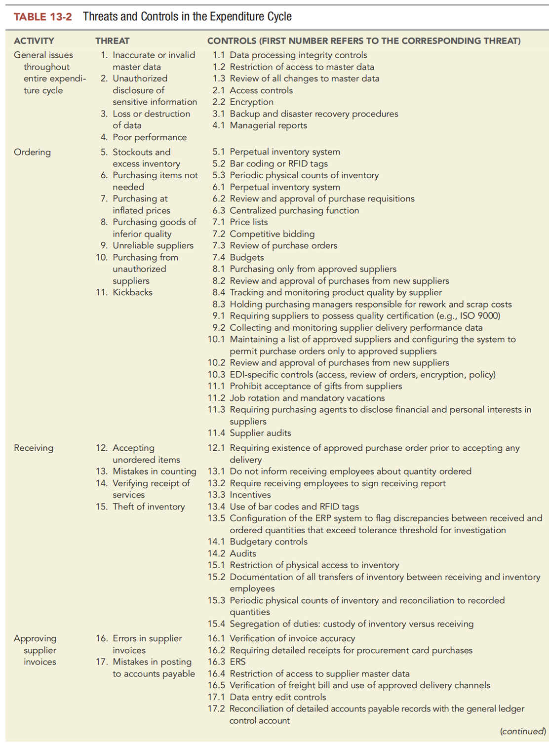 expenditure cycle - A recur[1]ring set of business activities and related data processing operations associated with thepurchase of and payment for goods and services.