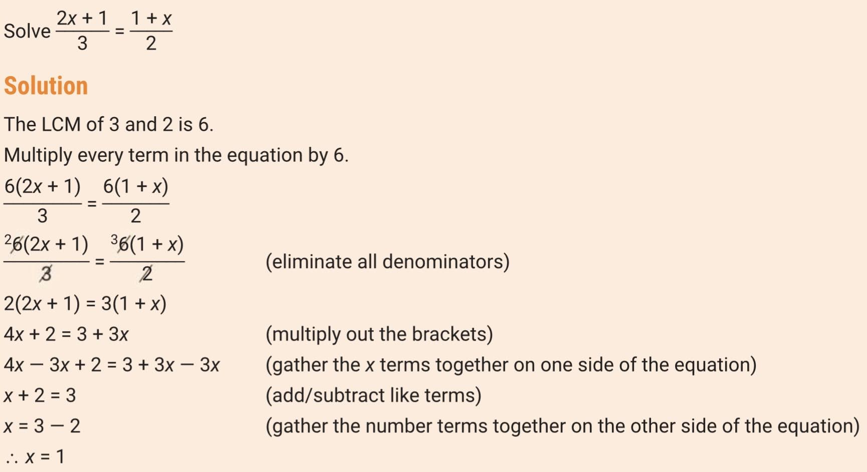 When solving equations that contain fractions we multiply both sides of the equation by the LCD. This eliminates all denominators. Then solve using the linear equation method.