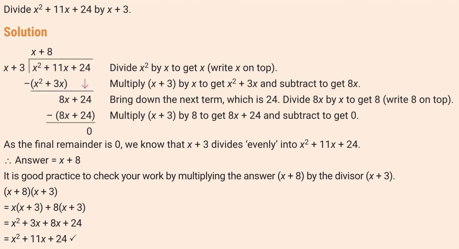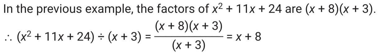 There are four stages to long division in algebra; divide, multiply, subtract, bring down.
