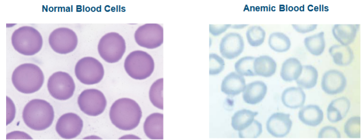 Anemia: Condition of inadequate or impaired RBC’s; a reduced number of volume of RBC along with too little hemoglobin in the blood.