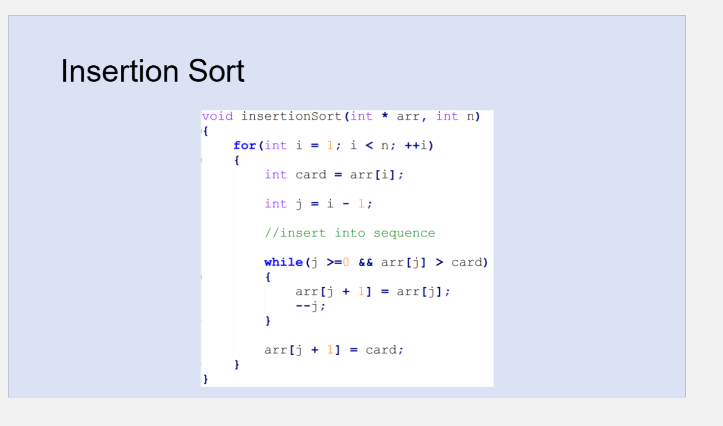 It takes one value, and constantly checks, but it doesn’t just magically goes into position, it does a lot of comparisons and swaps until it reaches a number where it is smaller.