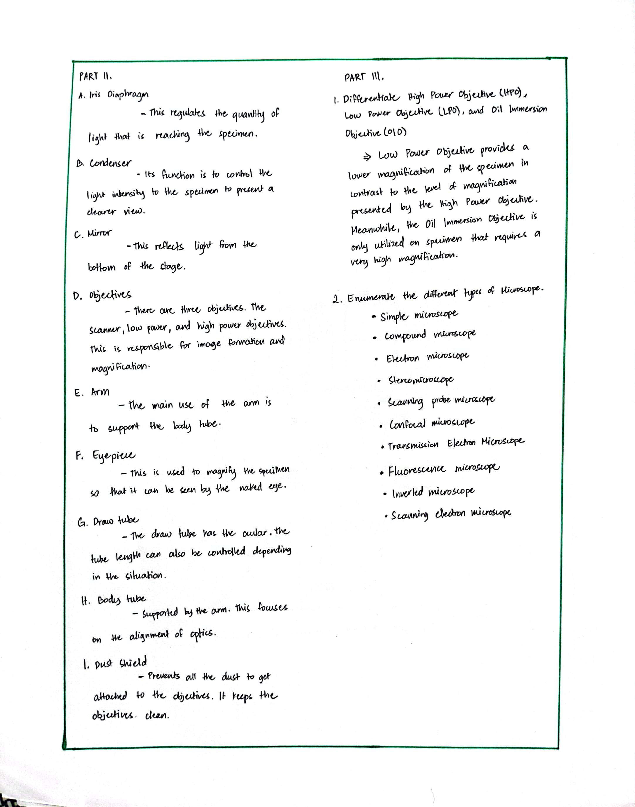 Parts of Microscope