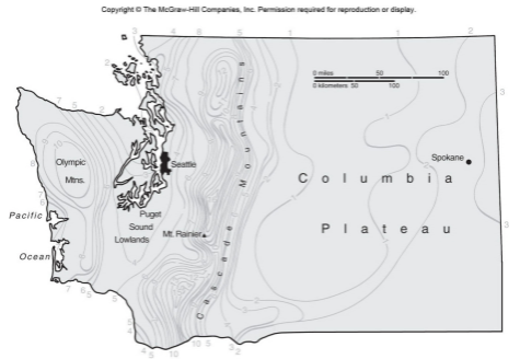 Isarithmic map: shows 3-D continuous volumes, such as elevation, temperature, or precipitation